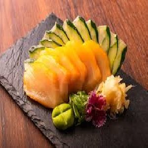 Alga, arroz, pepino, manga e kani.