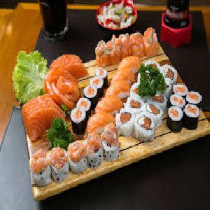10 sashimis variados, 5 sushi, 5 niguiri, 5 hots e 5 enrolados.