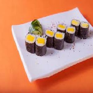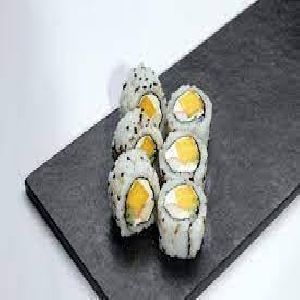 Enrolado com arroz por fora, alga e manga.